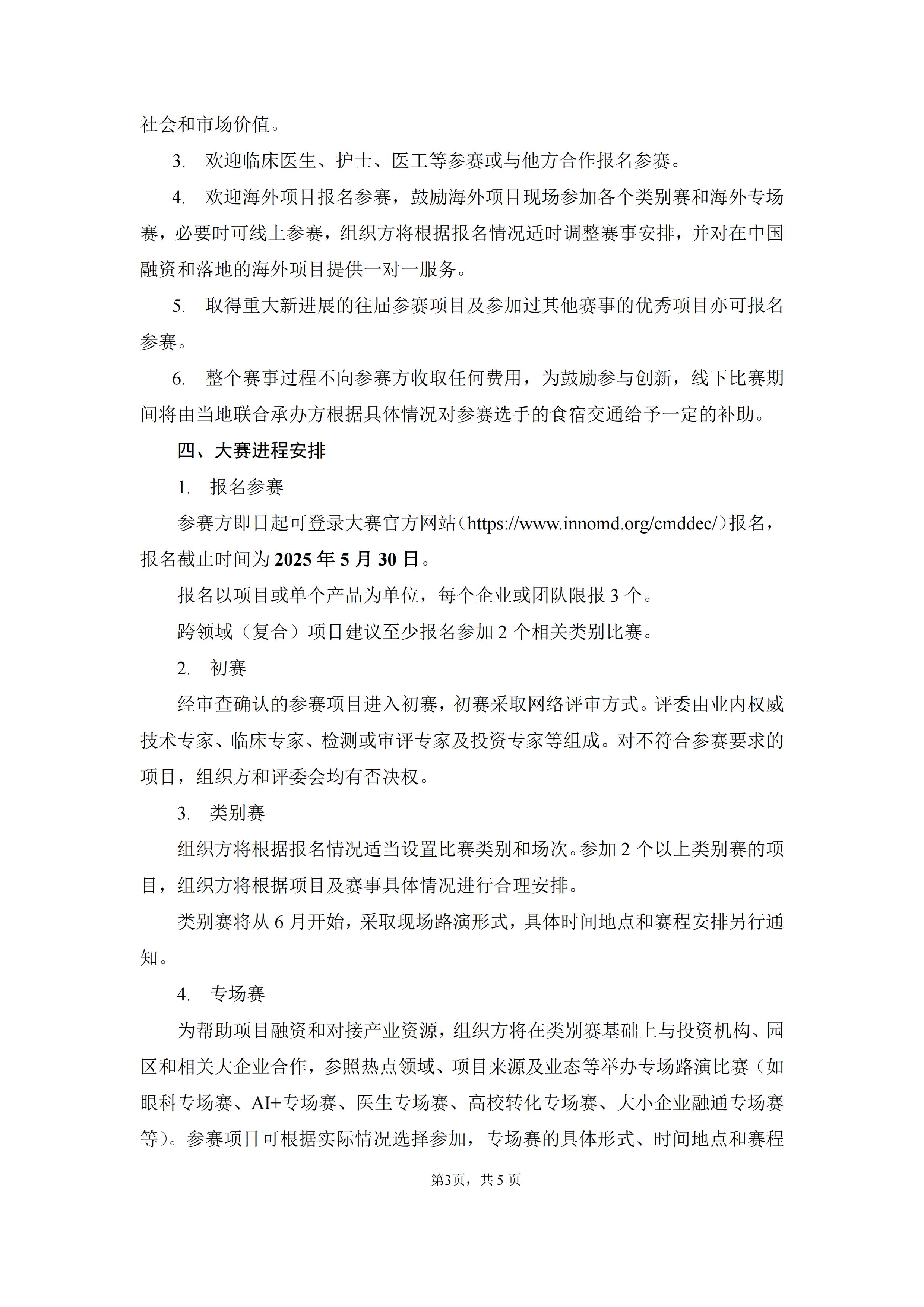 参赛方即日起可登录大赛官方网站(医疗器械创新网网://xiaoqijob.com/cmddec/)报名,报名截止时间为2025年5月30日。